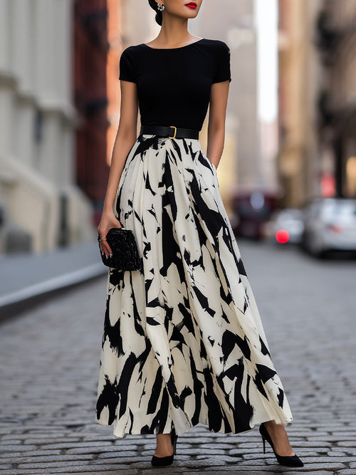 Women's V-Neck Vest-Style Spliced Pleated Dress