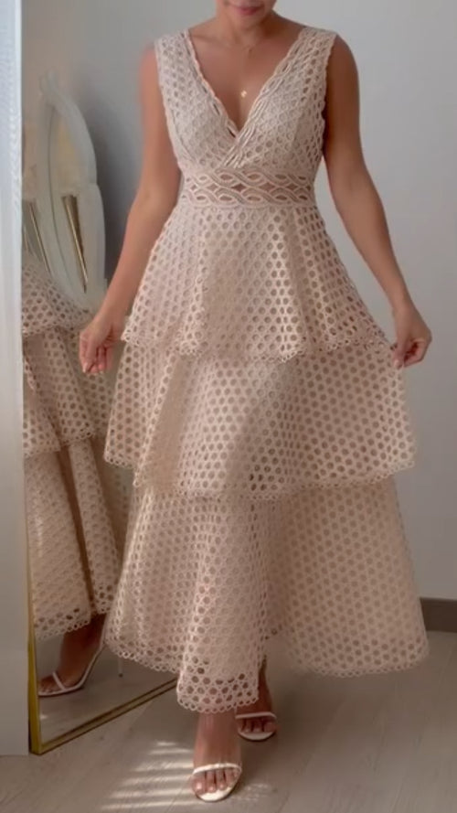 Women's Sleeveless Lapel Vest + Lace-Paneled Dress